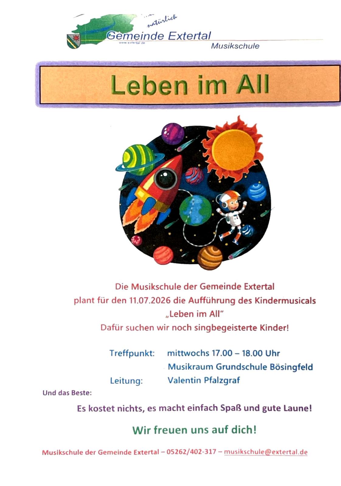 Seit mehr als 30 Jahren gibt es unsere Musikschule, die für das ganze Extertal einen hochwertigen Unterricht für verschiedene Instrumente anbietet.